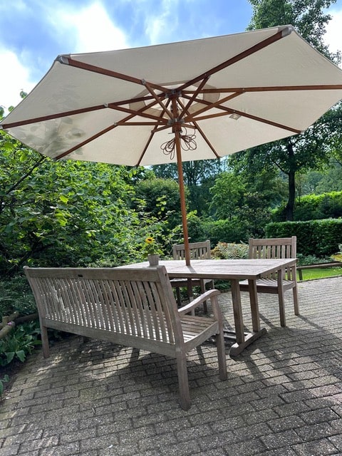 Zum Glück sind wir für Sie da! Mit unseren spezialisierten Reinigungsdiensten sorgen wir dafür, dass Ihre Sonnenschirme wieder wie neu aussehen, sodass Ihre Terrasse jederzeit ein frisches und einladendes Erscheinungsbild hat. Unsere professionellen Reinigungsverfahren entfernen gründlich Schmutz, Flecken und Gerüche, Ihre Sonnenschirme sehen nicht nur sauber aus, sondern haben auch eine längere Lebensdauer. Auf Wunsch können die Schirme zudem wasserabweisend imprägniert werden.